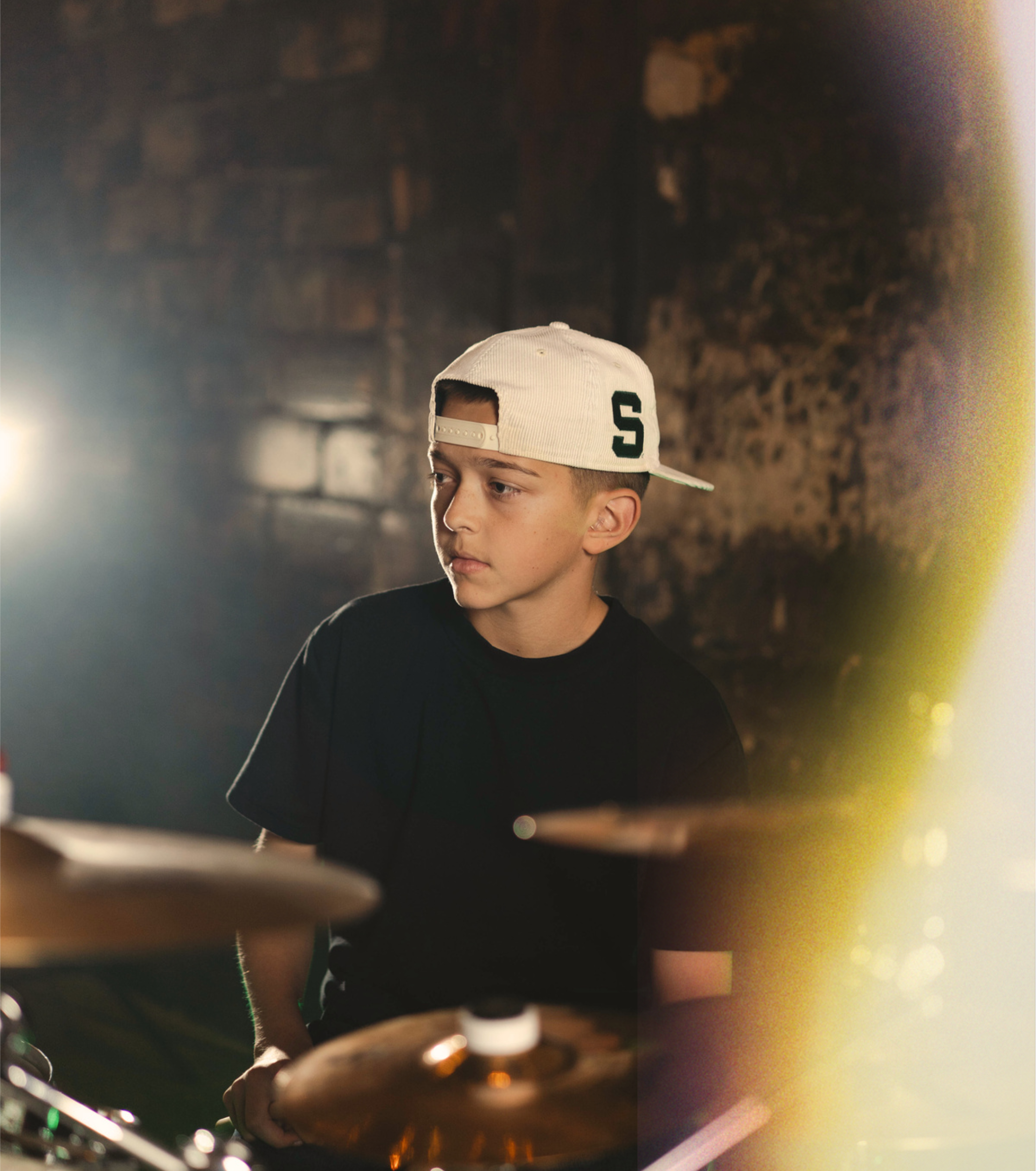 Dash (@dashthedrummer) is a 15-year-old, live-focused drummer located in Mid-Michigan. Dash is recognized for his deep pocket, dynamic control, and musical maturity well beyond his years.